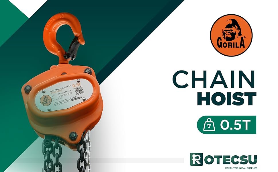 Be the first to review “GORILA Hand Chain Hoist 1100lbs 10ft (1/2 ton 3 Meters) with 2 Heavy Duty Hooks and Forged Locks | Safety Factor 4:1”