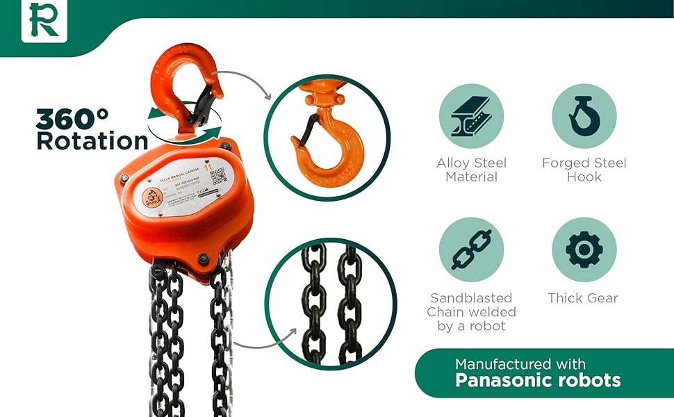 - Premium Build & Traceability: Features G80 corrosion-resistant chains, forged alloy steel hooks with 360° rotation, and robust steel latches. Each product includes a bilingual ID plate with a unique traceability code linked to a certificate.