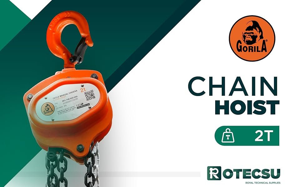 Be the first to review “GORILA Hand Chain Hoist 4400lbs 10ft (2 ton 3 Meters) with 2 Heavy Duty Hooks and Forged Locks | Safety Factor 4:1”